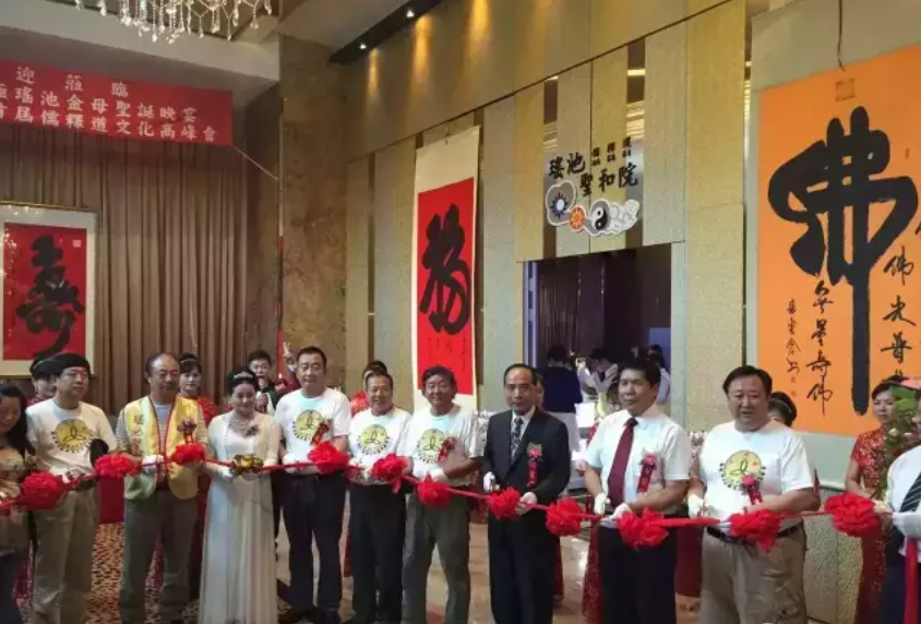 台湾一寺院住持尤为喜欢张东仓老师的‘巨佛’,与张东仓先生合影留念,张东仓先生现场挥毫,展示其榜书巨佛,技压群英!张东仓先生现场展示独创“多子无边寿”,“一笔五行福”技惊群雄!!